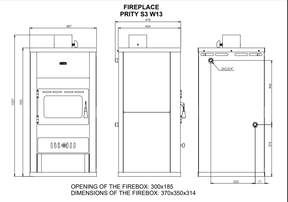 Maße Feurraum (HxBxT): 330x370x325