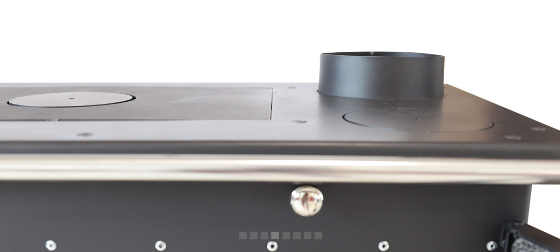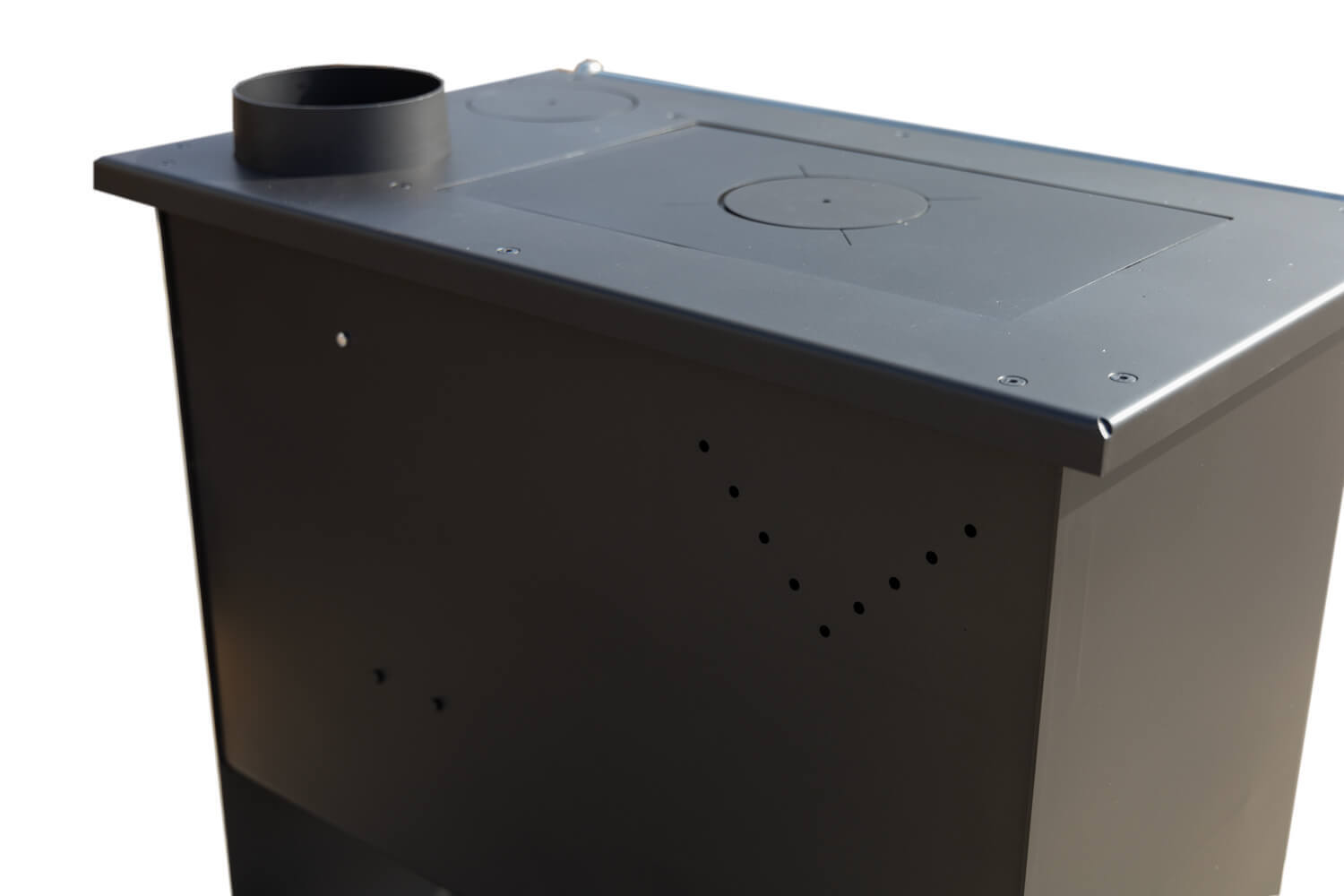 Gehäuseblech mit einer Dicke von 3 mm Obereplatte 3mm und Kochplatte 4 mm, hitzebeständig lackiert.