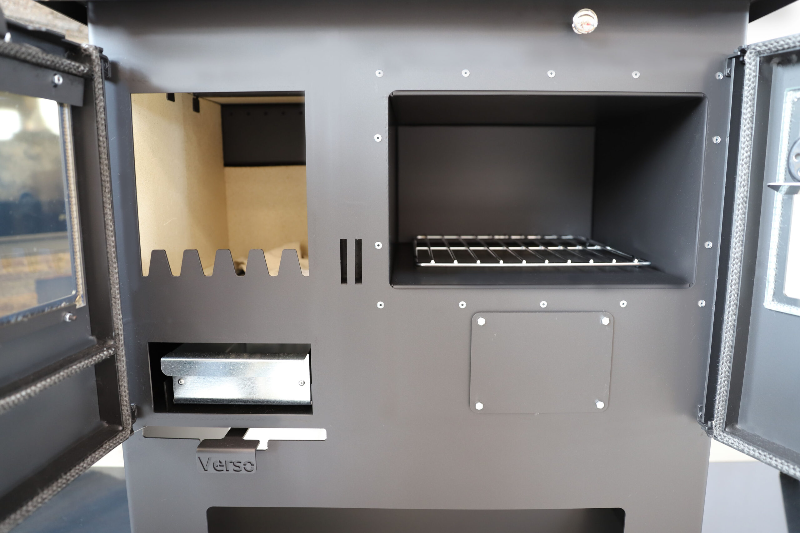 Das Basismodell VERSO CS verfügt über einen großen Backofen zum Backen von Brot, Pizza, Fleisch, Fisch und vielen anderen leckeren Gerichten und auch große Kochfläche. Dabei hilft auch das eingebaute Thermometer zur Überwachung der Temperatur im Backofen.